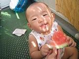 今日は(こぼすので)ベランダでスイカを食べました☆スイカ好きの花道☆