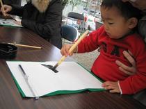 大きな筆で頭をなでて...賢くなりますように(*^m^)