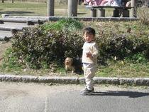 花道は初めてハニー君(なっちゃんちのヨークシャテリア)とお散歩行きました☆