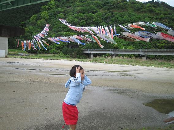 四国ではこんな鯉のぼりをよく見る(ё_ё)場所が違えば飾り方も違うのね☆