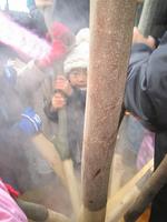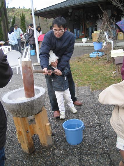 子供だけの千本つきは子供が棒を持って餅をつきます(o^-^o)