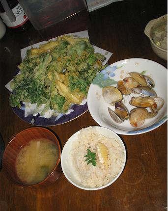 てんぷら、筍ご飯、味噌汁、焼貝をしましたヽ(*^-^*)o
