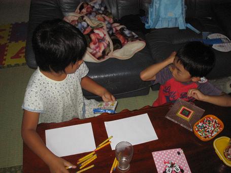 明日から雨だと言うので子供用にアイロンビーズを持って(-_☆)