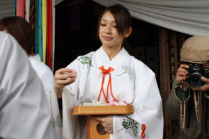 今年は雨だったので一人に2個、紅白の餅を配ってくださいました☆