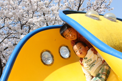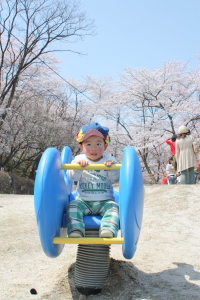歳のことはすっかり忘れて、けいはんな公園の桜の花の中(ё_ё)