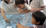 みんなで手を入れて魚になめられてるような不思議な感覚を体験♪