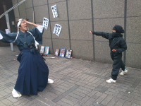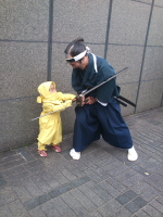 忍者の格好にしてもらって、侍斬り放題500円で楽しんだ☆