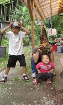 お化けな筍も掘れて(-_☆)子供達大喜び♪で、皆様にメールしました☆