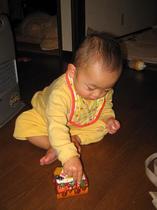 クリスマスヽ(´▽`)/ 今日はクリスマスイブですヾ(*’ー’)o と言っても…特に何も用意していません(;^_^A パパがケーキを買ってきてくれましたo(‘ー’)o 今回も花道の好きなように食べさせました☆ 花道は少し成長しました→スプーンを使って食べるようになりました(☆_☆) 上に乗っている果物を取り除きスプーンでケーキを食べていました☆ プレゼントはそのうち買いに行きます…(ё_ё) すっかり忘れていました(;^_^A