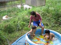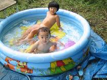 大きなプールヾ(*’ー’)o 今日は朝からプールの準備をして(*^-^*) 花道と涼香でプール遊びをしましたヾ(*’ー’)o 家のプールより全然大きくて☆遊んでいても楽しそうo(‘ー’)o 去年、大きすぎる位を買っておいて良かった(*^-^*) 花道も涼香も大喜びO(>▽<)O カエルも参加して遊びました☆