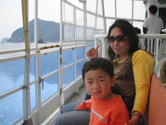 花道、お船も初めてなので大喜びヽ(→∀←。)ノ♥このお船もぐって海中が見れる(ё_ё)