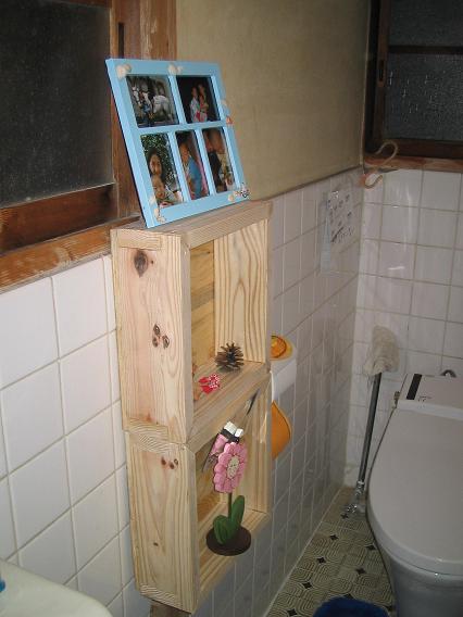 トイレの削れて汚かったところに棚を作って目隠し(^▽^;)