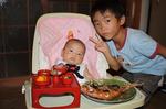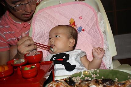 お食い初め☆ 今日で大舟が生まれて100日☆…と1日め(;^_^A 本当は100日目にするのですが…昨日は花道のサッカーで… いつもお兄ちゃんを優先の可哀想な次男(^▽^;) 朝から食材を買いに近所のスーパーを回り、最後はならファへ→ 始めからならファに行っとけば良かった(- -;*) 石は菅原神社から拝借しました(;^_^A 食器を出して、料理を作って…夕方やっと完成☆ 無事にお食い初め出来ましたヽ(*^-^*)o
