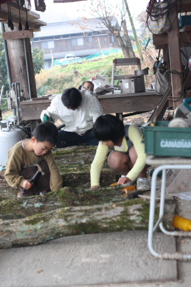 家族総出(ё_ё) 切ってきた木に椎茸の種駒を植え付けるために→ いつもの事ながら( ̄∇ ̄;)山添村に来ています☆ そして朝から雨の中、家族+バァバ+姪の涼香をこき使って(-_☆) 椎茸の植え付け作業しましたヾ(*’ー’)o ドリルで穴をあけ、穴に種駒を入れ、ハンマーでたたく(ё_ё) にわか流れ作業ですが、午前中で終了しました☆ みんなのおかげで椎茸作業も早く終わりました♪ありがとう!!!