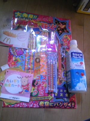 ラジオ体操最終日☆ 花道は毎日欠かさずラジオ体操に行きました☆ …が( ̄□ ̄;)!!昨日、印をもらってないので問い詰めると… 「もう体操終わってた。」って…んな訳ねえだろ!!(メ`д´)ヶ どうもどこかで道草食ってたらしく…遅刻して印もらえず… 今日は朝から「印を貰えなかったら家に入れへんから!!」 というて行かせましたヾ(*’ー’)o 最終日なので驚くほどいっぱい貰ってきました(・_・; 最近のラジオ体操はリッチです☆⌒(*^∇゜)v