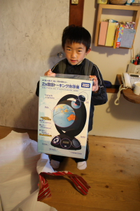 二人とも大喜びです♪地球儀は色んな機能が付いています(・_・;