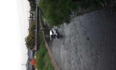 大舟を迎えに行って、いつもの帰り道…目の前で車が川に( ̄□ ̄;)!!