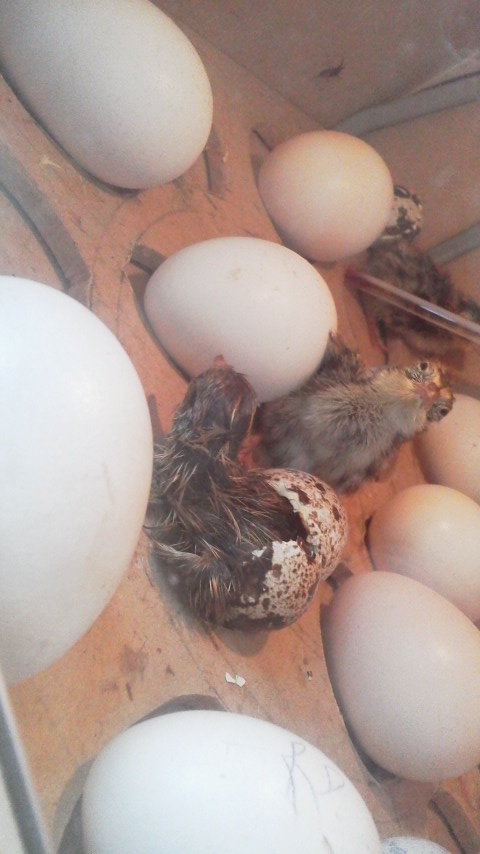 孵化。第二弾☆ パパが作った孵卵器。前回から改良して第二弾☆ うずら卵とレッドシルキーに挑戦(-_☆) いよいよウズラちゃんの孵化する期日がやって来ました♪ そして今日…ウズラちゃん1匹発見(≧m≦*) 小さくって可愛いヾ(≧▽≦)ノ他の卵にも続々とヒビが(・_・; 明日の朝は何匹孵ってるかなぁ(ё_ё)